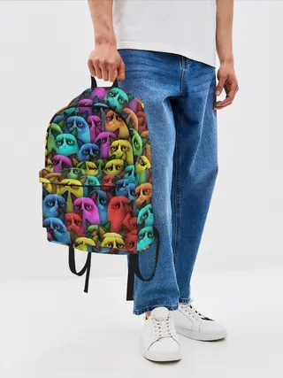 Рюкзак джинсовый / Разноцветные сердитые коты