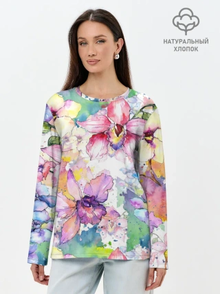 Лонгслив женский. Хлопок / Цветы