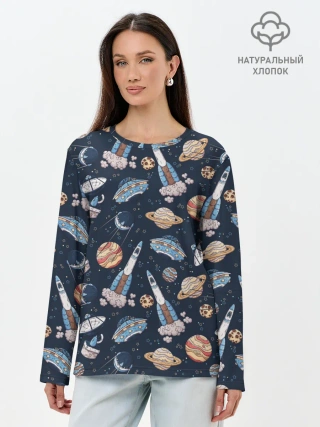 Лонгслив женский. Хлопок / Корабли, планеты и спутники