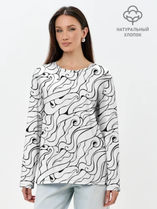 Лонгслив женский. Хлопок / Черно-белые узоры