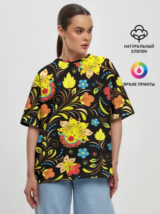 Женская футболка оверсайз / РОСПИСЬ УЗОР ХОХЛОМА