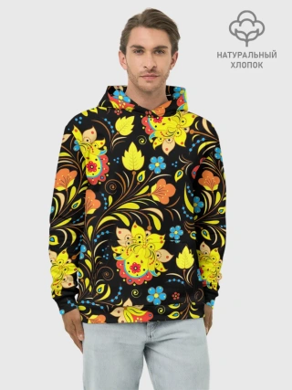 Худи мужской база хлопок / РОСПИСЬ УЗОР ХОХЛОМА
