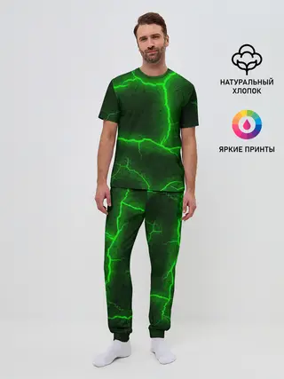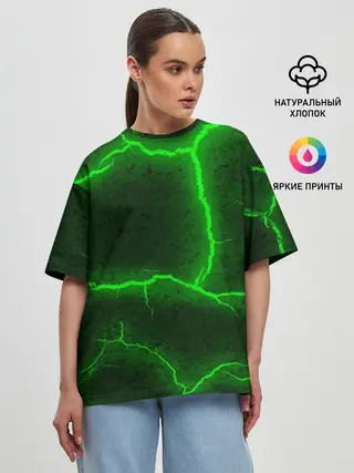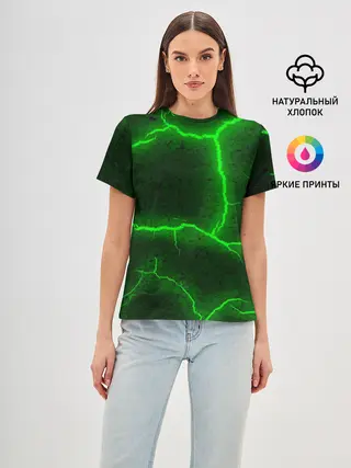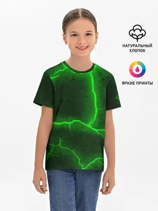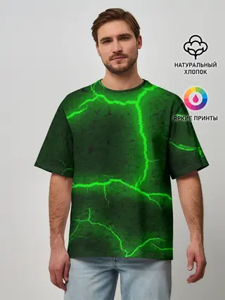 Мужская базовая футболка / К - 13 зелёная трещина 3D