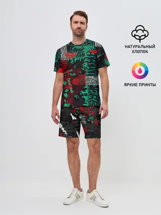 Хорошая качественная футболка. Принт чёткий. Состав указан на бирке. Маломерит либо сидеть будет в обтяжку. Очень плотная, прям тёплая. Ехала вечность!