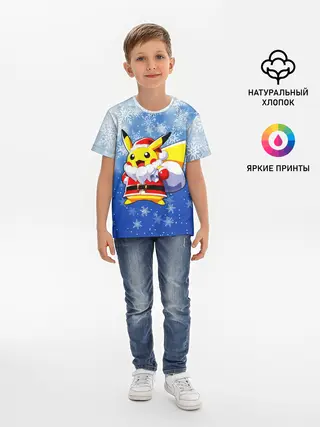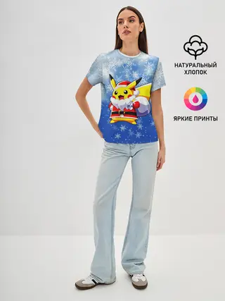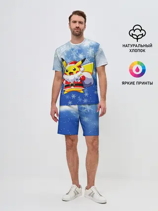 Мужская базовая футболка / НОВОГОДНИЙ ПИКАЧУ