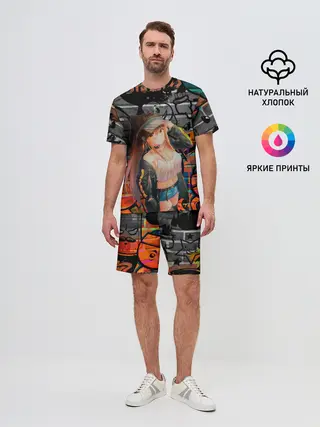 Мужская базовая футболка / Anime Girl with Graffiti