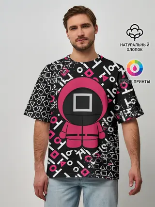 Мужская базовая футболка / ИГРА В КАЛЬМАРА СТРАЖ КВАДРАТ | SQUID GAME