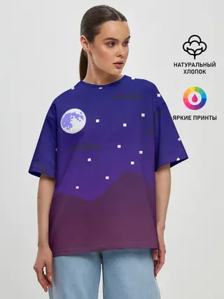 Мужская базовая футболка / Пиксельная ночь | 8 bit