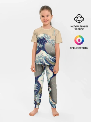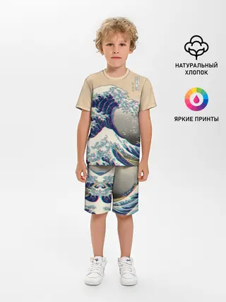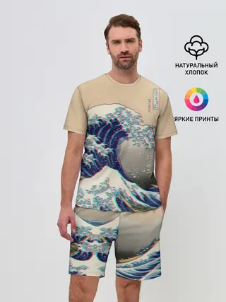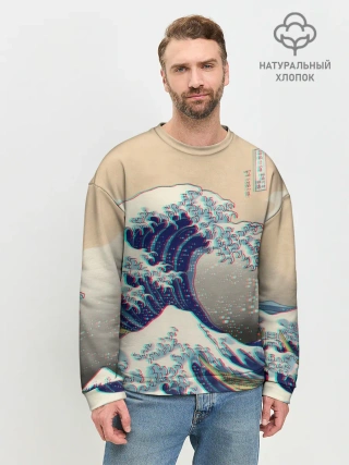 Мужская базовая футболка / Kanagawa Wave Glitch Art