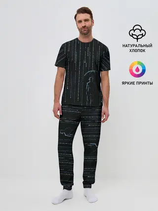 Мужская базовая футболка / Двоичный дождь, матрица