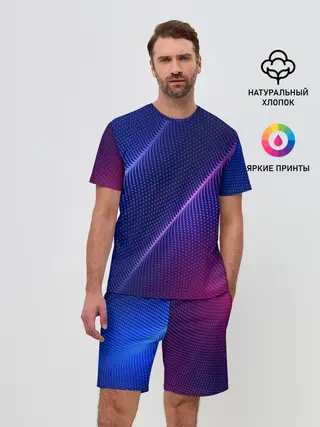 Мужская базовая футболка / фиолетово 3d волны 2020