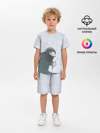 Хорошая качественная футболка. Принт чёткий. Состав указан на бирке. Маломерит либо сидеть будет в обтяжку. Очень плотная, прям тёплая. Ехала вечность!