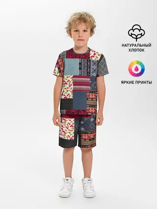 Мужская базовая футболка / Деревенский стиль. Пэчворк.
