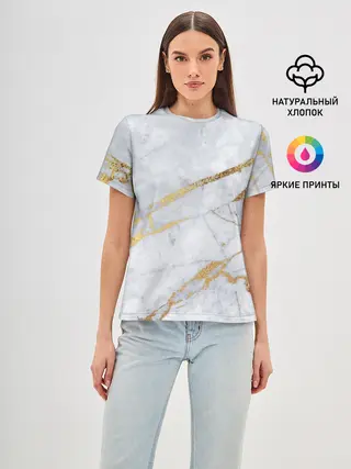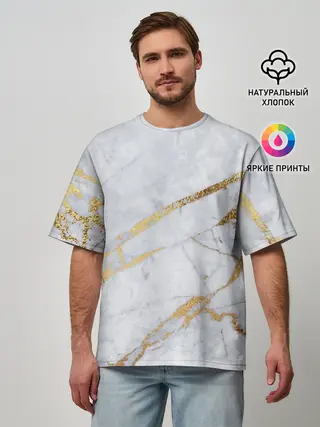 Мужская базовая футболка / Золото на белом