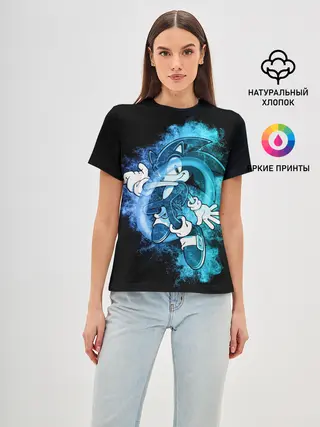 Мужская базовая футболка / Соник сквозь кольцо