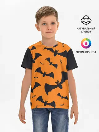 Мужская базовая футболка / ЛЕТУЧАЯ МЫШЬ В ДЕНЬ ХЭЛЛОУИНА