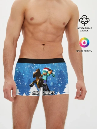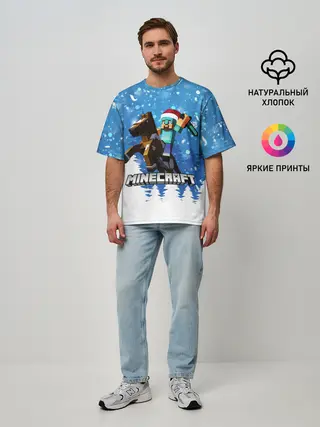 Мужская базовая футболка / Новогодний Манкрафт на коне