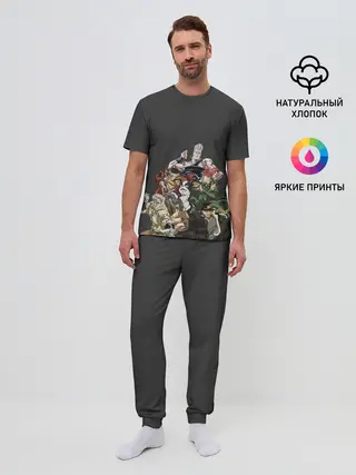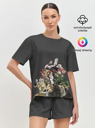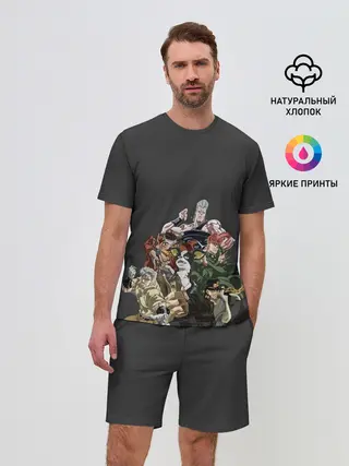 Мужская базовая футболка / Герои JoJo на сером