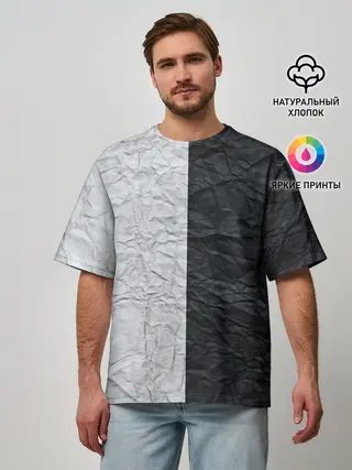 Мужская базовая футболка / Мятая Черно-Белая Бумага