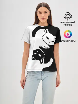 Мужская базовая футболка / ДВА КОТА КУВЫРКАЮТСЯ.