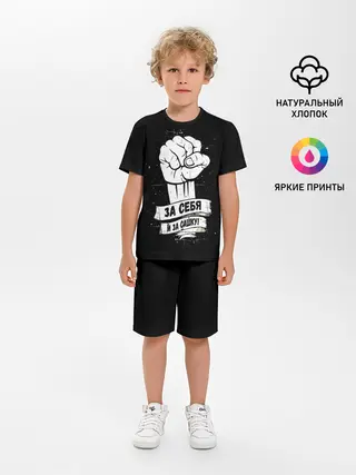 Хорошая качественная футболка. Принт чёткий. Состав указан на бирке. Маломерит либо сидеть будет в обтяжку. Очень плотная, прям тёплая. Ехала вечность!