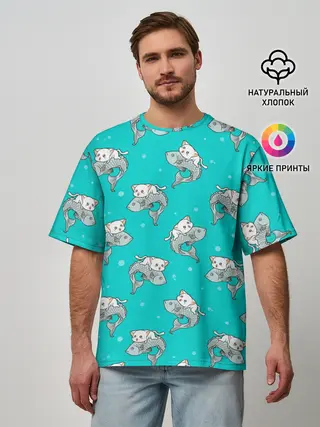 Мужская базовая футболка / Котики и рыбки
