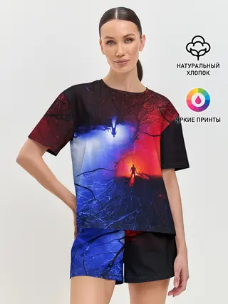 Хорошая качественная футболка. Принт чёткий. Состав указан на бирке. Маломерит либо сидеть будет в обтяжку. Очень плотная, прям тёплая. Ехала вечность!