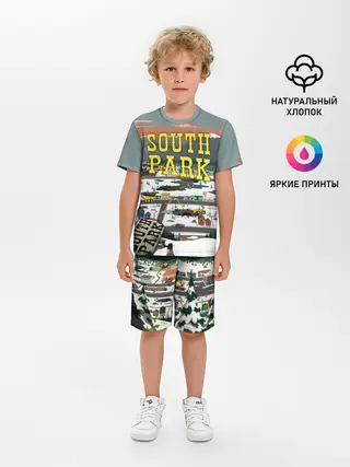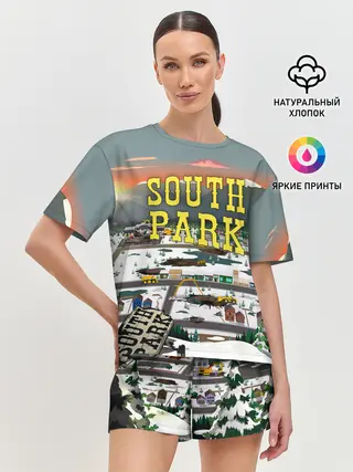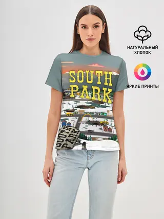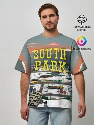 Мужская базовая футболка / Южный Парк разрушенный город