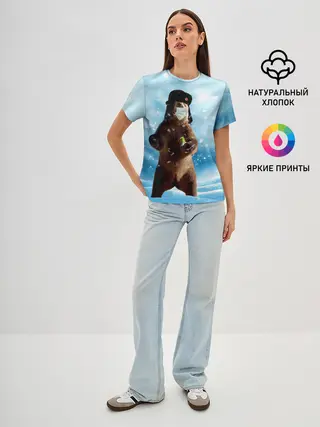 Мужская базовая футболка / Зимний мишка в реалиях 2020 г.