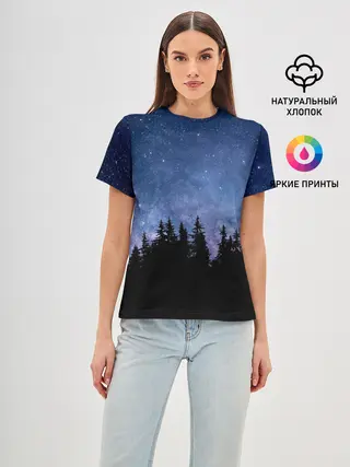 Мужская базовая футболка / НОЧНОЙ ЛЕС И ЗВЕЗДЫ