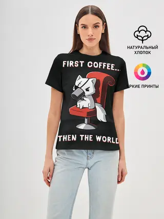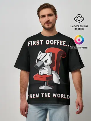Мужская базовая футболка / С начала кофе, потом мир