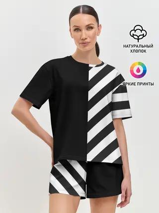Мужская базовая футболка / Черно-Белые Полосы