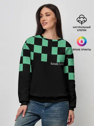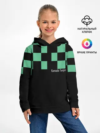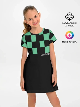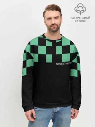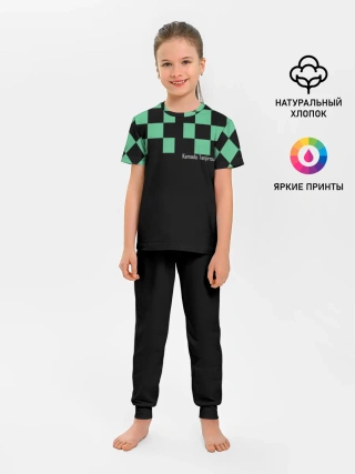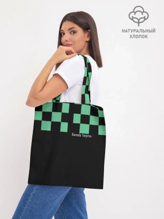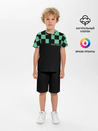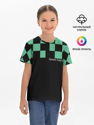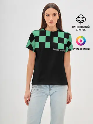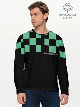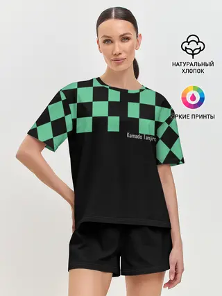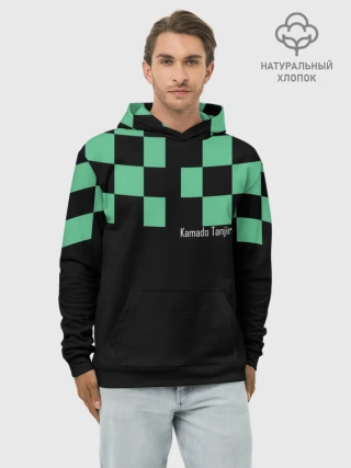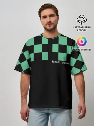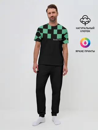 Мужская базовая футболка / Kamado Tanjiro зеленые квадраты