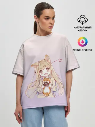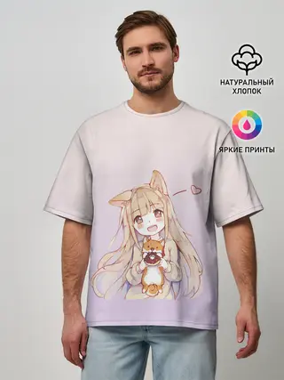 Мужская базовая футболка / малышка чиби пончик лис