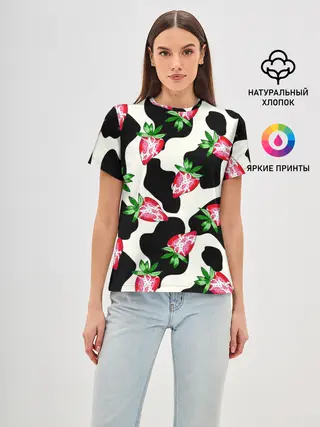 Мужская базовая футболка / Клубника на коровьей шкуре