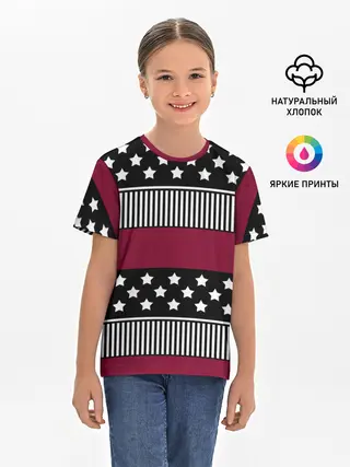 Мужская базовая футболка / Бордово-черный узор полосатый