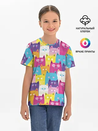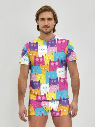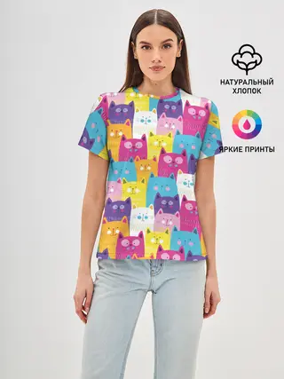 Мужская базовая футболка / Разноцветные котики