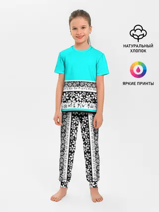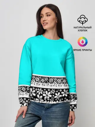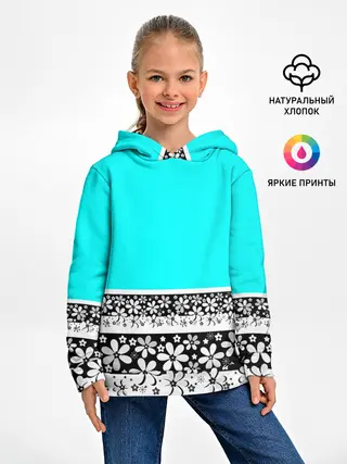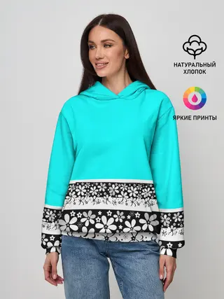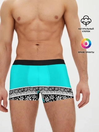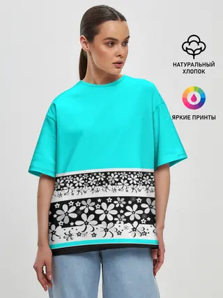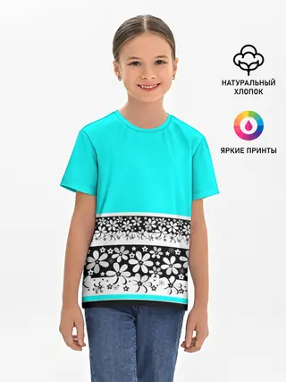 Мужская базовая футболка / Цветочный бирюзовый узор