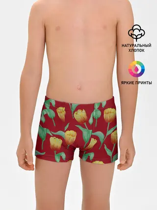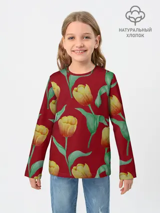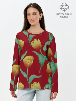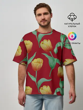 Мужская базовая футболка / Тюльпаны на красном фоне
