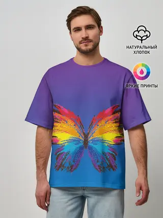 Мужская базовая футболка / красочная бабочка