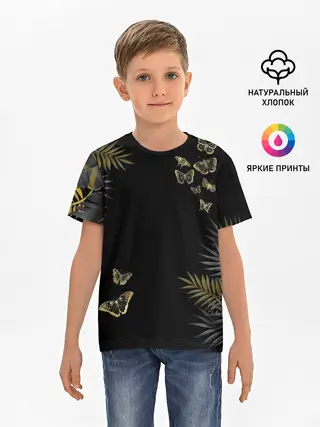 Мужская базовая футболка / ЗОЛОТЫЕ БАБОЧКИ И ПАПОРОТНИК