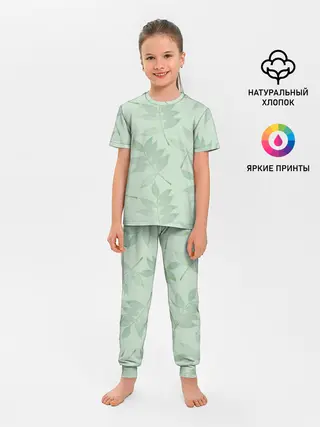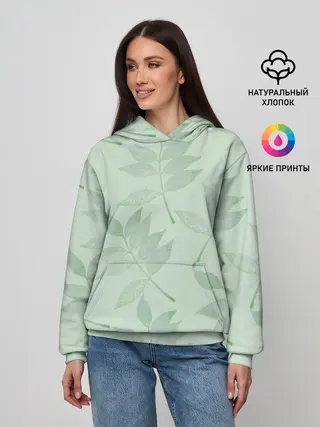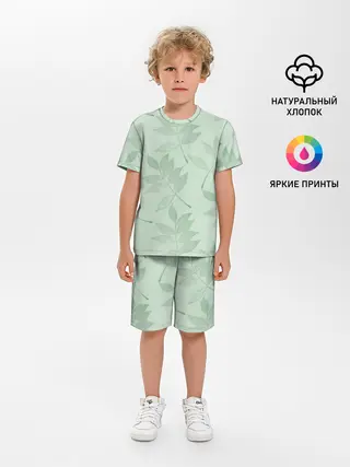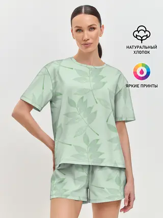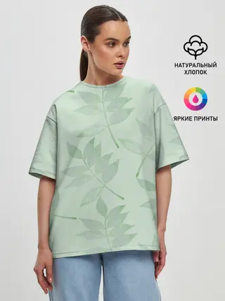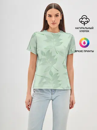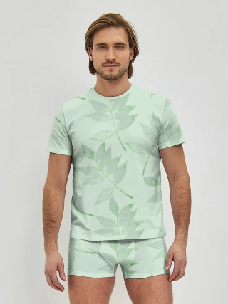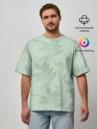 Мужская базовая футболка / Зеленые листья на светло зеленом