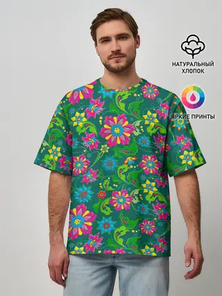 Мужская базовая футболка / Поле разноцветных цветков