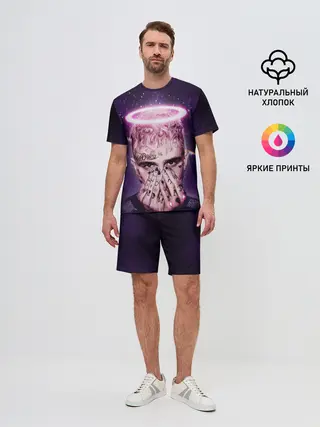 Хорошая качественная футболка. Принт чёткий. Состав указан на бирке. Маломерит либо сидеть будет в обтяжку. Очень плотная, прям тёплая. Ехала вечность!