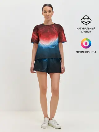 Хорошая качественная футболка. Принт чёткий. Состав указан на бирке. Маломерит либо сидеть будет в обтяжку. Очень плотная, прям тёплая. Ехала вечность!