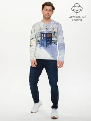 Мужская базовая футболка / ТАРДИС В СНЕГУ