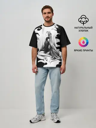 Мужская футболка оверсайз / Черно-белая Мику Хацунэ