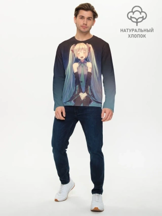 Мужской лонгслив базовый / Хатсуне сидит прикрыв глаза