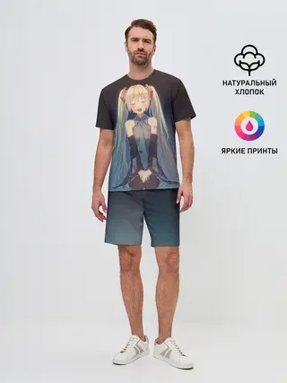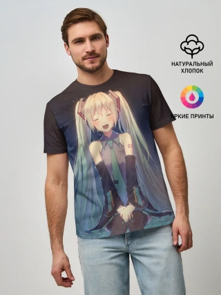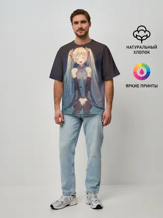 Мужская футболка оверсайз / Хатсуне сидит прикрыв глаза