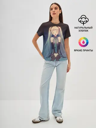 Женская футболка оверсайз / Хатсуне сидит прикрыв глаза